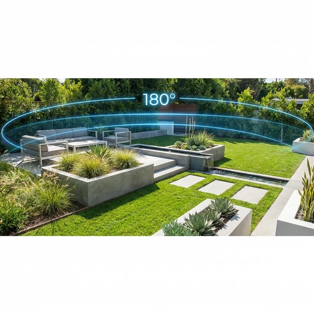 • 180-градусов ъгъл: Пълно покритие на двора или склада.