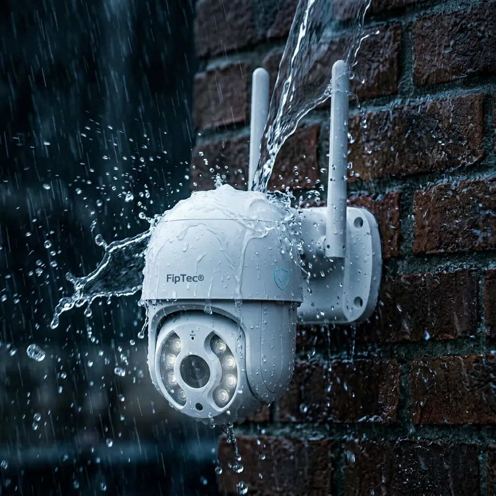 IP66 е официален стандарт за издръжливост. Той означава, че корпусът на камерата е напълно защитен от проникване на прах и може да издържи на силни водни струи (проливен дъжд или сняг) от всяка посока.
